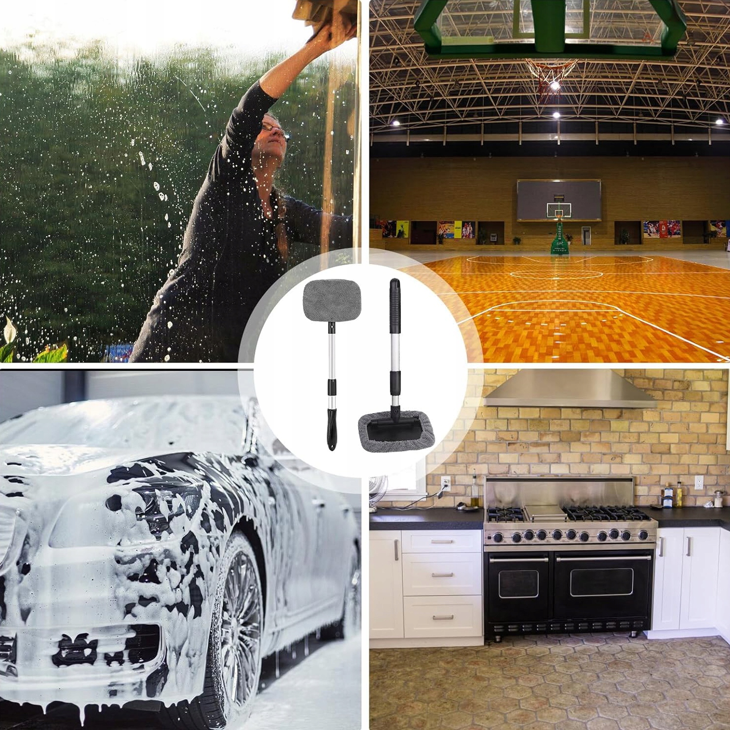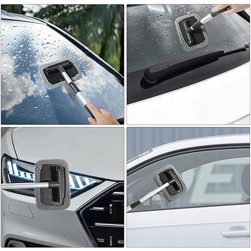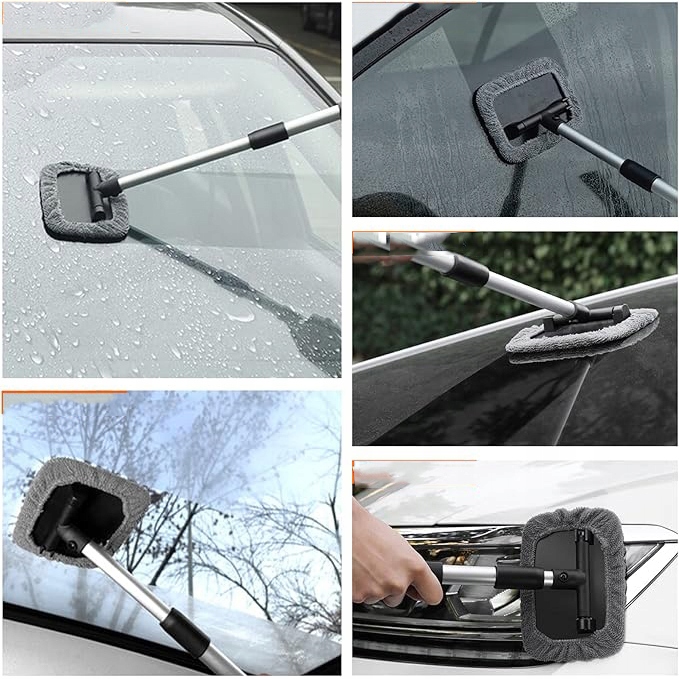 ✅ Комплект для очистки автомобильных окон, телескопическая ручка, внутри и снаружи окна + 5 микрофибсовых ткани + стеклянные дворники 💧