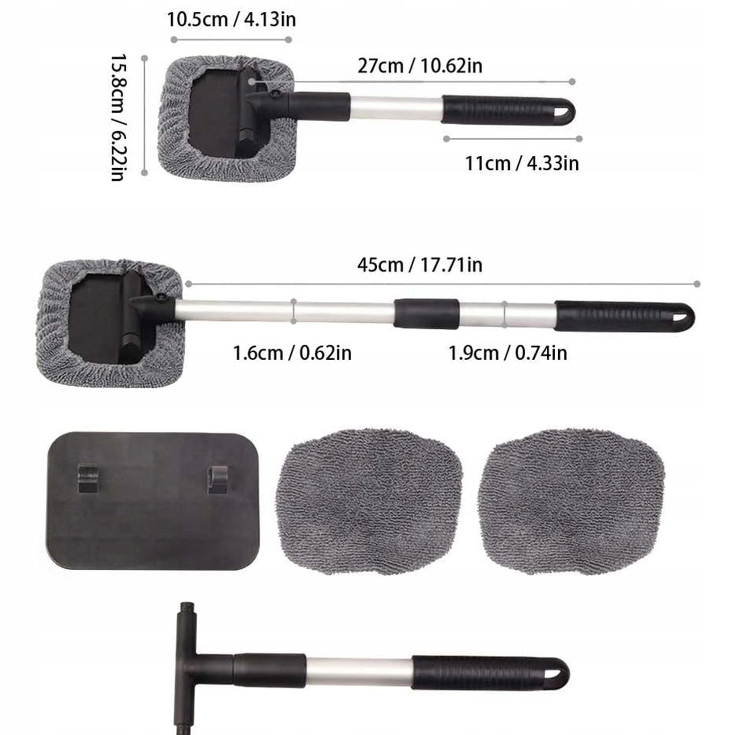 🌟 -Рог принимает телескопическую структуру и может быть отрегулирован в диапазоне 27-45 см, а головки можно повернуть на 180 °, чтобы сделать доступ к углам, зазорам и т. Д. безопасность. Его также можно использовать для удаления снега за пределами автомобиля.