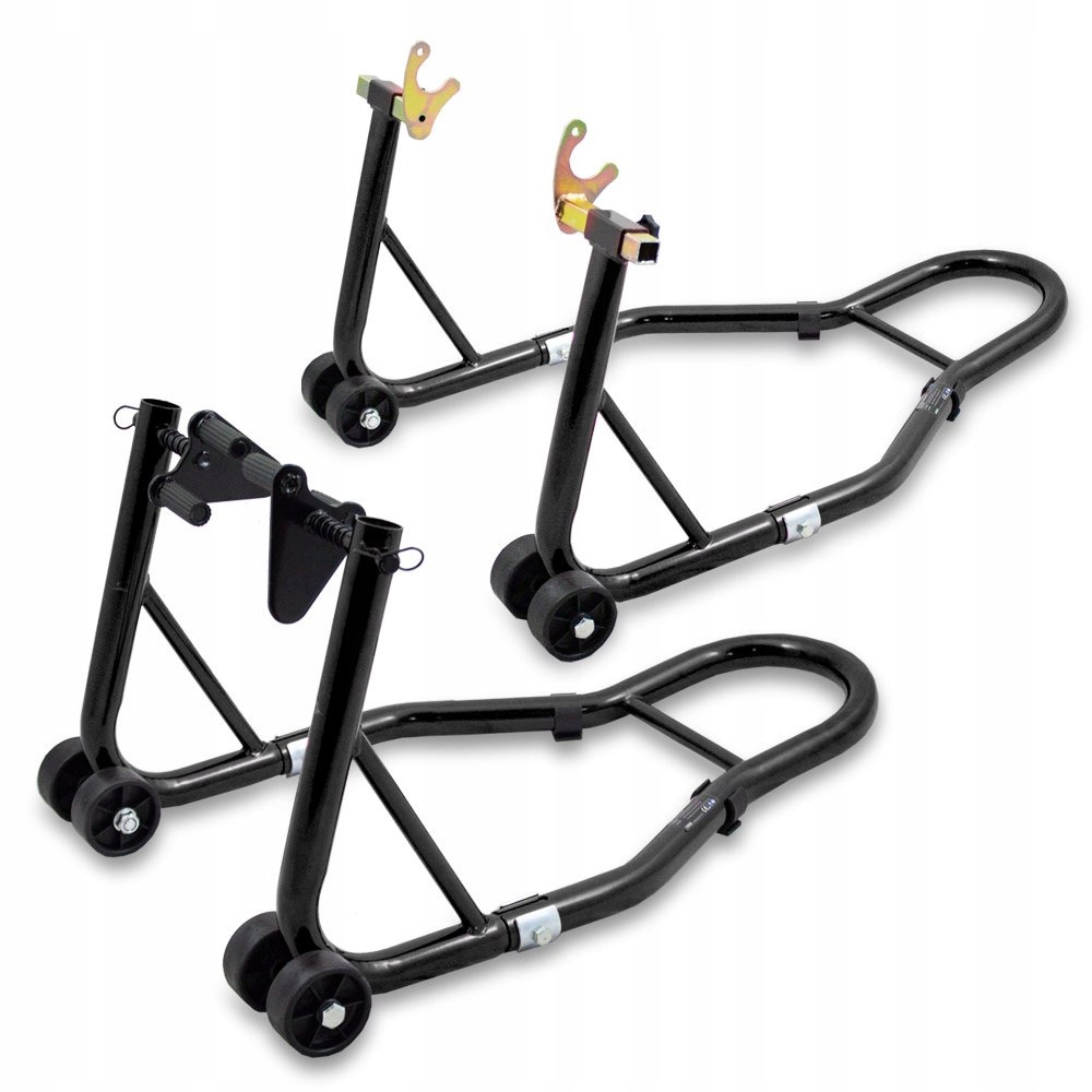 Набор мотоциклетных стойков на переднее и заднее колесо - это практическое решение b>, которое будет облегчить все работы с вашим мотоциклом . > Регулируемые ручки делают подставки совпадают с большинством моделей мотоциклов , а их широкая область контакта гарантирует некоторых удерживающих во время работы. >