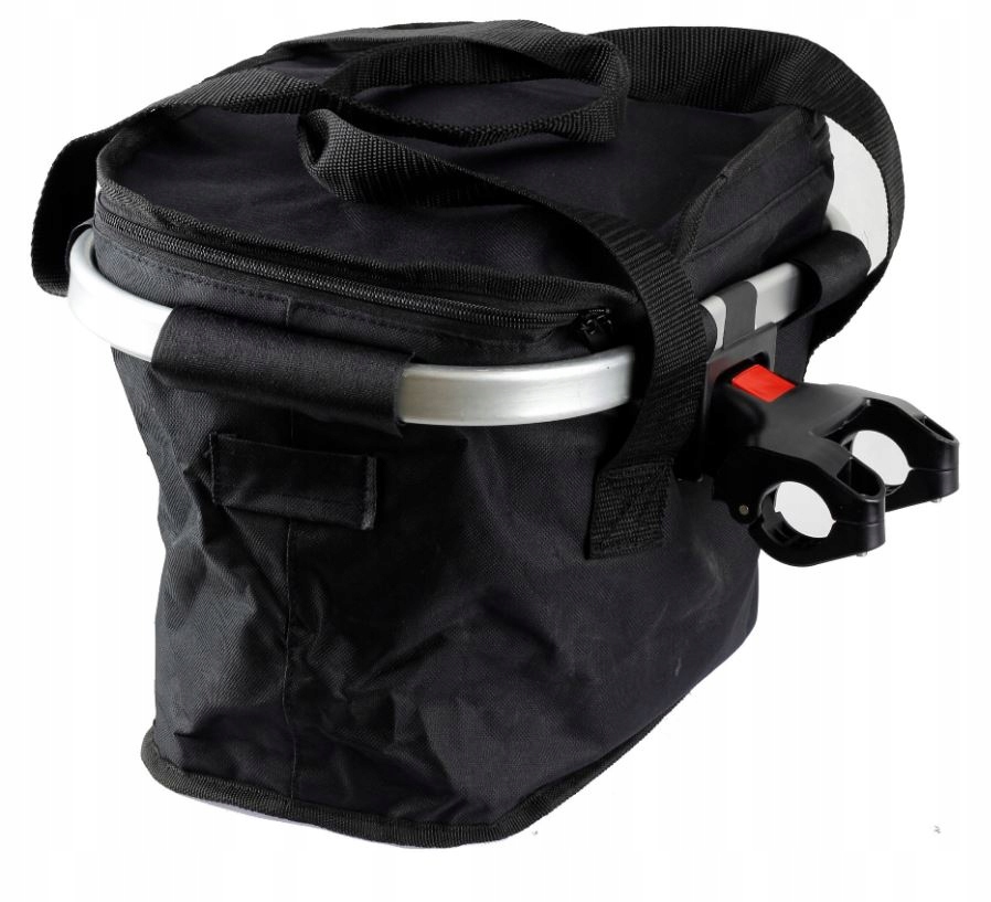 Корзина изготовлена из водонепроницаемого материала и прикреплена к алюминиевой раме с помощью липучки. У него есть уши, которые позволяют его свободно носить с собой. Закрывается сверху на молнию – защита от дождя и выпадения вещей из корзины. Внизу корзины имеется постоянный элемент жесткости.
