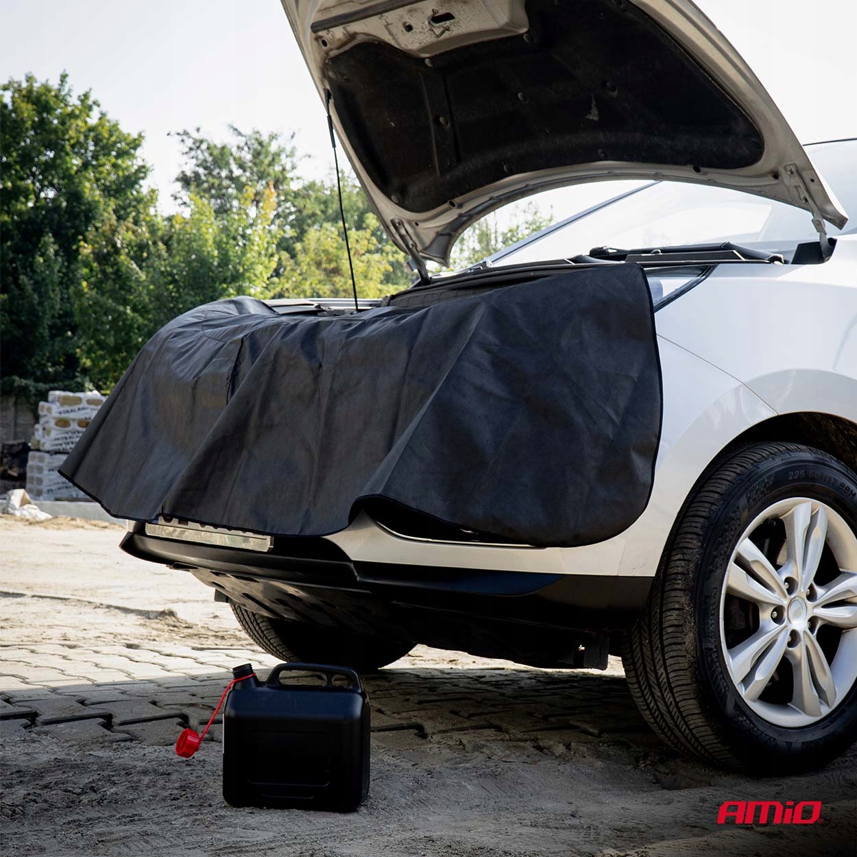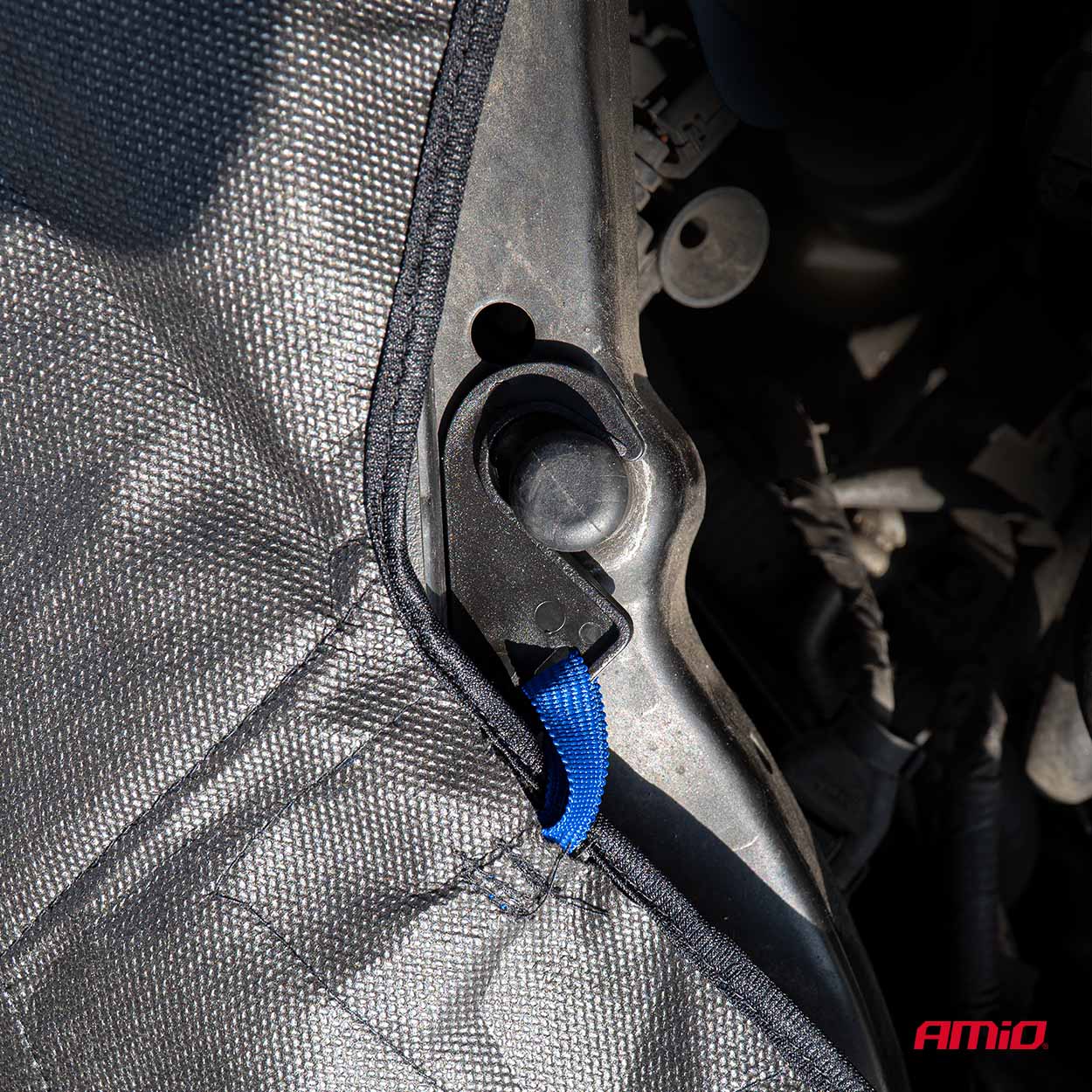 Универсальный передний сервисный чехол защищает отремонтированный автомобиль от царапин и загрязнений. Крышка маслостойкая, многоразовая, очень проста в установке и безопасна для лакокрасочного покрытия благодаря использованию пластиковых крепежных крючков.