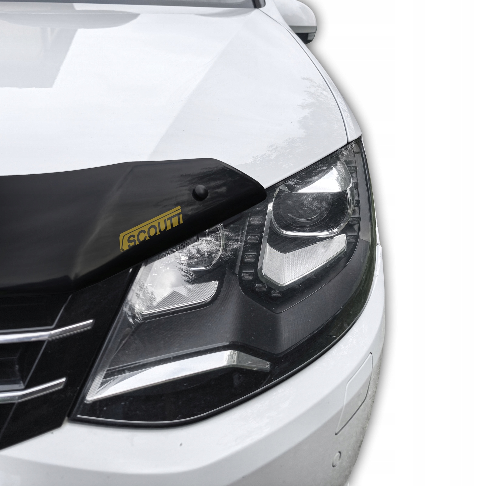 Передний спойлер на капоте защищает от ударов мелких камней, выброшенных из-под колес движущихся автомобилей, не повреждая при этом лакокрасочное покрытие капота