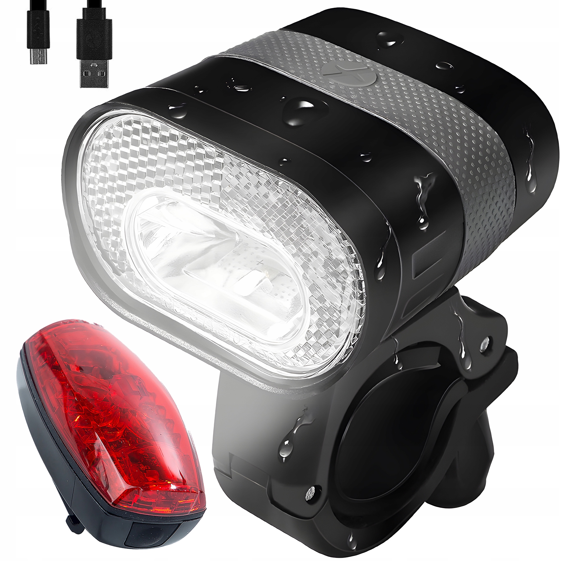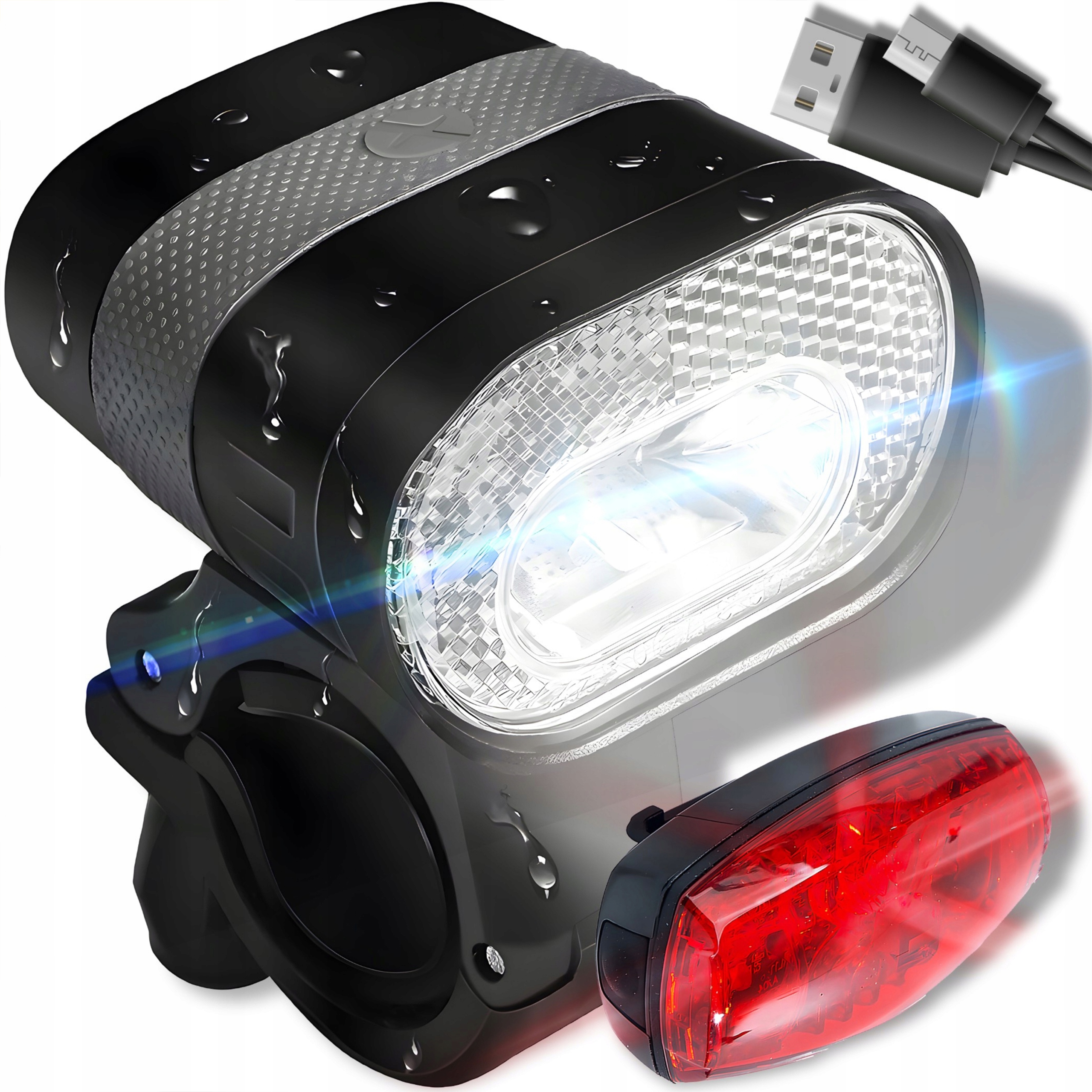 СВЕТОДИОДНАЯ ПЕРЕДНЯЯ ВЕЛОСИПЕДНАЯ ФАРА АККУМУЛЯТОРНАЯ + ЗАДНИЙ ПРОЧНЫЙ КАБЕЛЬ