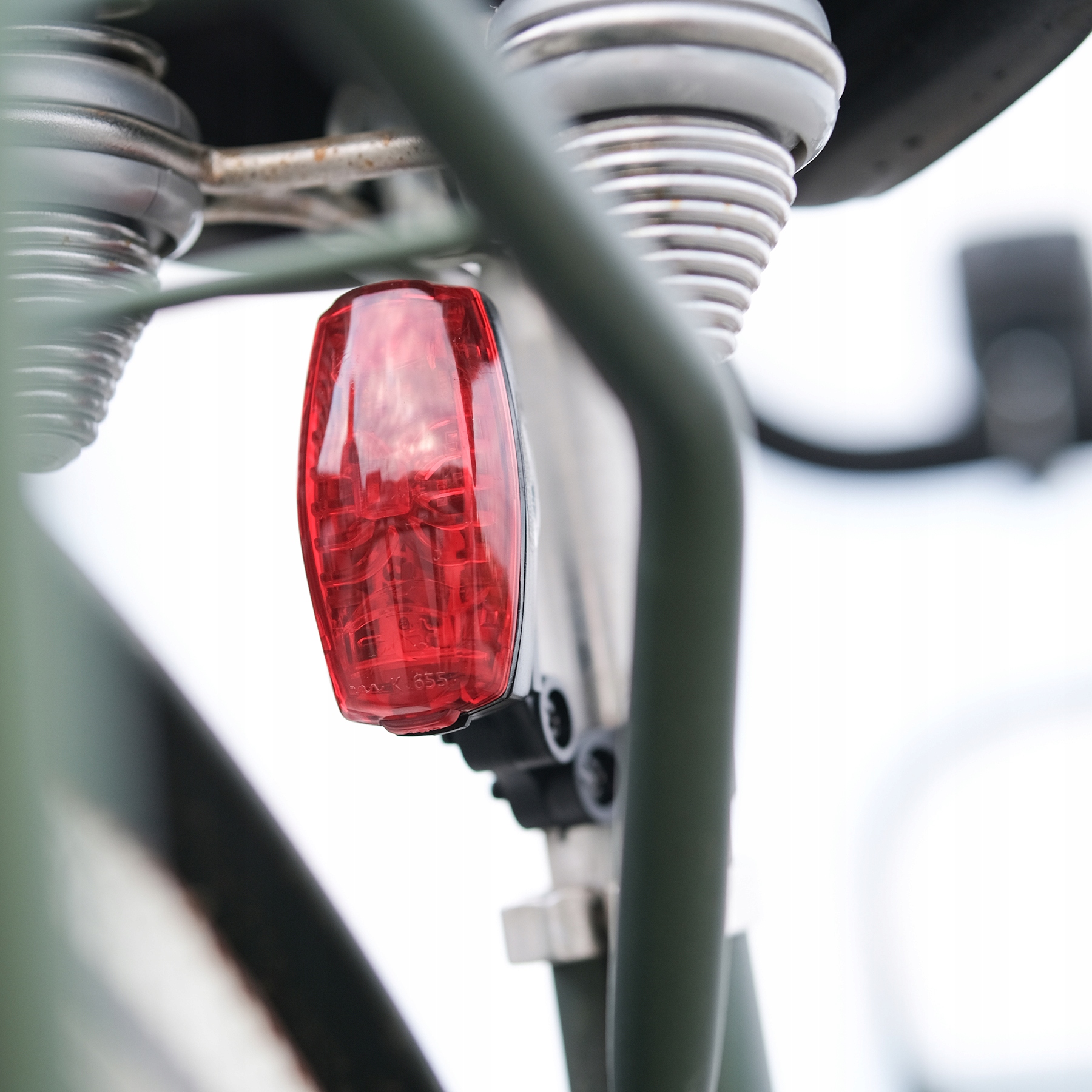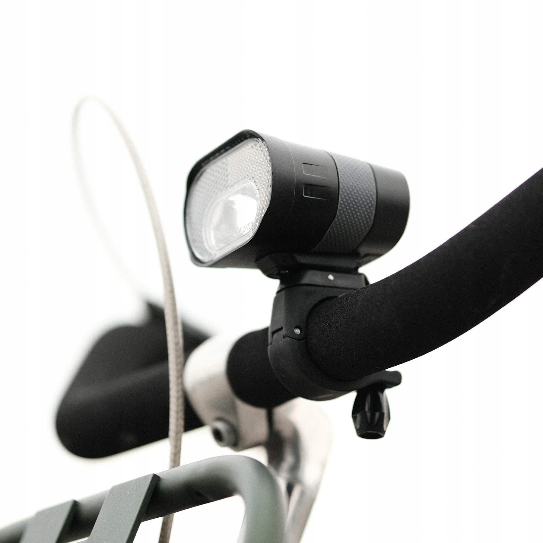 Передняя лампа оснащена диодами LUXLED, обеспечивающими очень сильный свет. Это чрезвычайно важно при движении ночью и после наступления темноты. Белый резкий свет виден издалека. Передний фонарь имеет 3 режима освещения: постоянный 100 %, постоянный 50 % и мигающий. Идеально подходит для ночных поездок на велосипеде или скутере