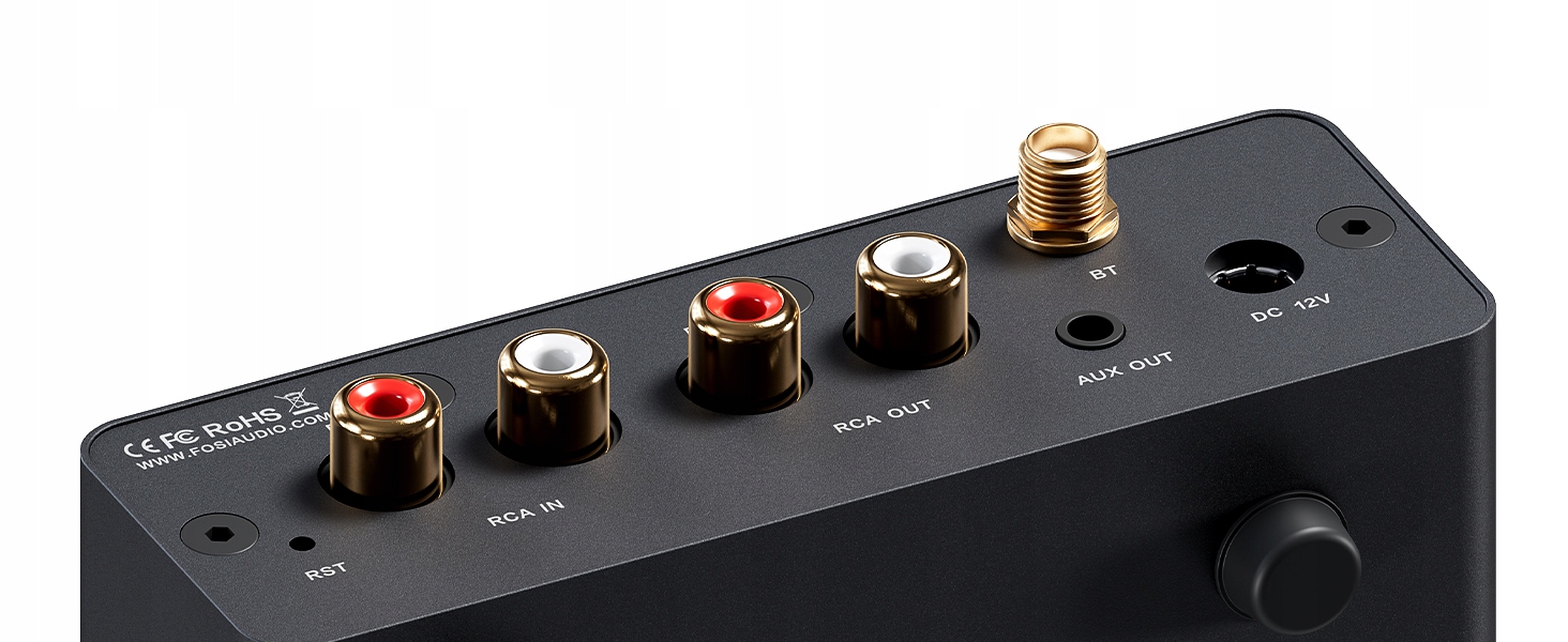 ✔️ Универсальные входы и выходы — RCA, AUX и Bluetooth в одном устройстве.