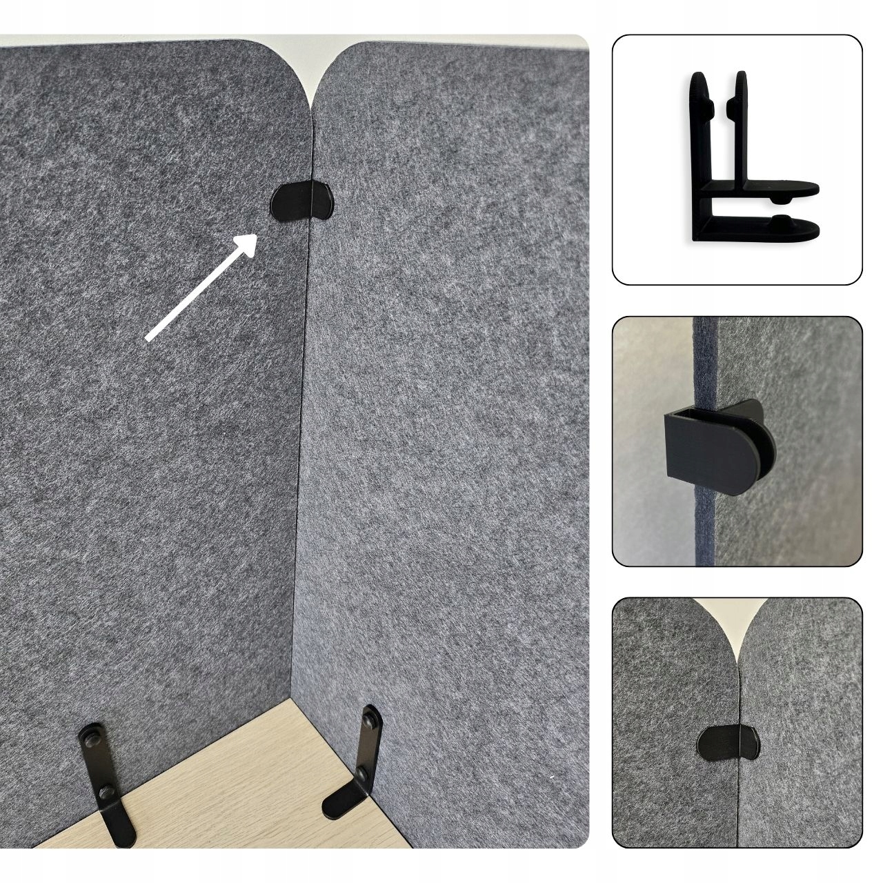 Прикрепляем 1 разъем к каждому разделу, что позволяет объединять два раздела под прямым углом - идеальное решение для создания угловых систем на столе!