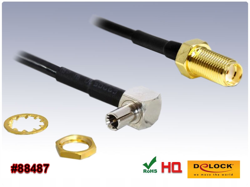 • Угловая вилка TS-9 под углом 90° > розетка SMA