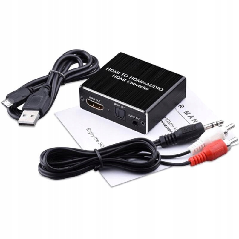 Экстрактор HDMI на HDMI + Audio (R/L + SPDIF) позволяет подключите устройство, передающее аудио- и видеосигналы (тюнер, приставку, DVD, Blu-ray), к телевизору через кабель HDMI. Кроме того, вы можете извлечь аудиосигнал с устройства и отправить его на ресивер домашнего кинотеатра или другое подобное устройство. Благодаря такому решению звук будет слышен стандартно из динамиков телевизора и дополнительно из второго источника при включении ресивера. Интересное решение, когда мы хотим контролировать и решать, когда звук должен быть слышен с данного устройства.