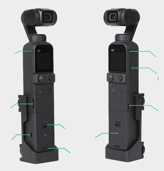 Крепления расположены с разных сторон и под разными углами, поэтому вы можете легко использовать Dji Osmo Pocket с монопод, штатив или присоска, держатель или зажим, предназначенный для камер GoPro. Это позволяет устанавливать камеру в таких местах, как штатив, шлем, рюкзак, автомобиль, велосипед и т. д.