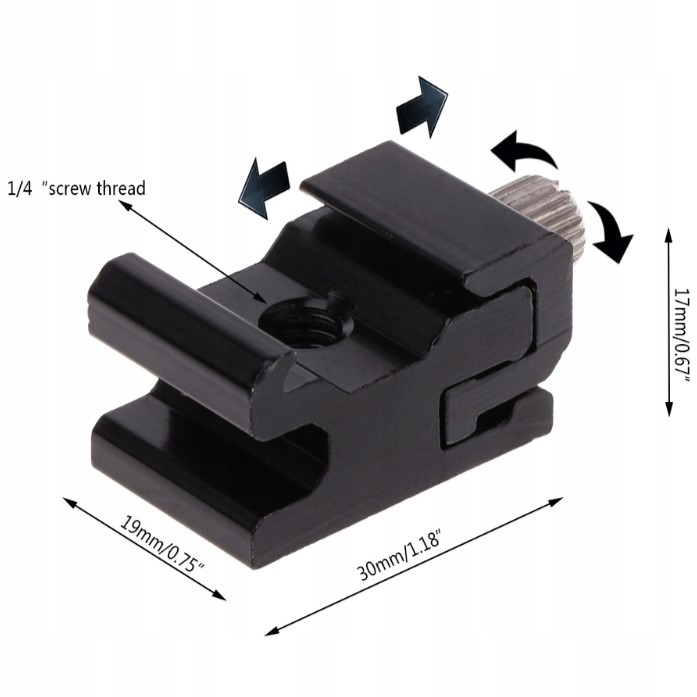 Позволяет установить вспышку, микрофон и аксессуары с горячим башмаком на стандартную фоторезьбу 1/4 дюйма (фото- и студийные штативы