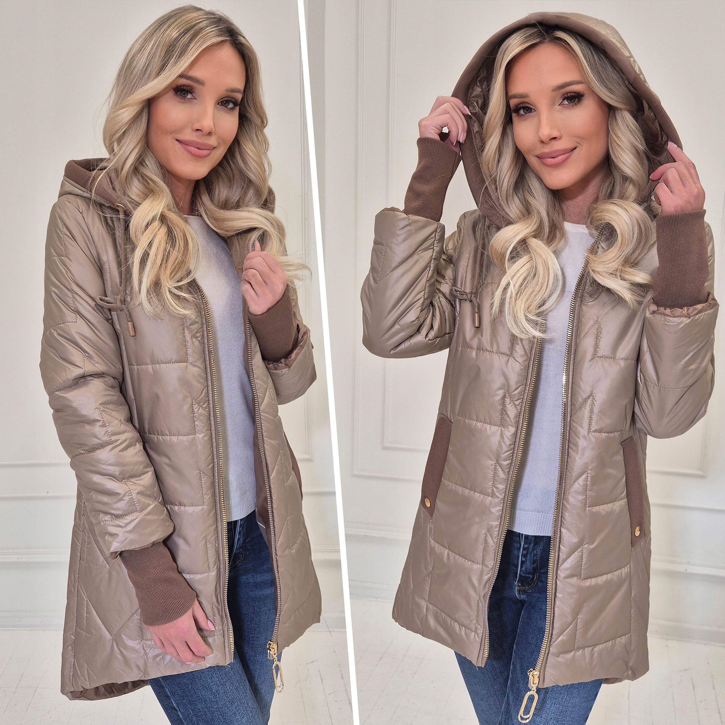 Переходное стеганое пальто весной, женская весна с легким капюшоном s