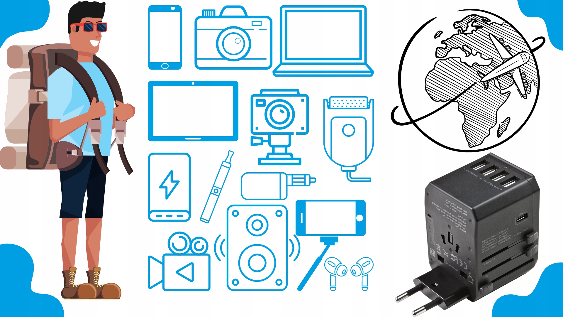 - ✅Встроенные 4 порта USB и USB C позволяют заряжать до 5 различных устройств одновременно такие как смартфон, внешний аккумулятор, планшет, КПК, iPod, MP3, камера почти во всем мире. Суммарная мощность макс. 5,6А.