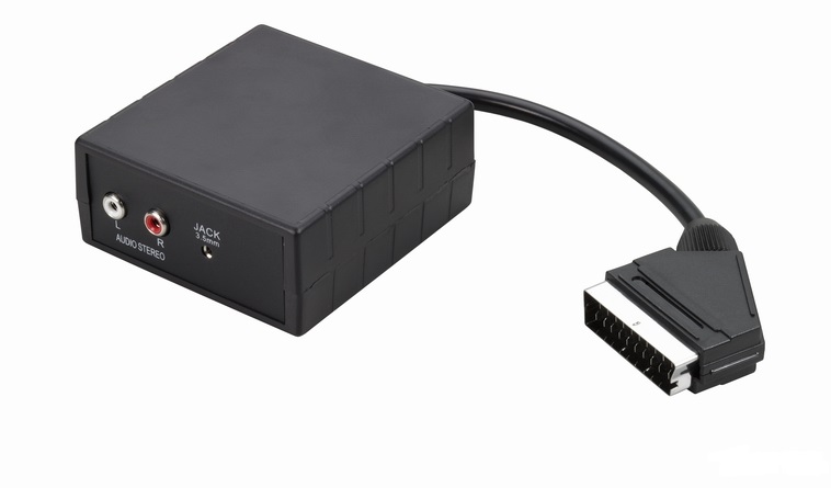 Позволяет извлечь аудиосигнал (стерео) из разъема SCART для подключения нескольких аудиоустройств, таких как стереосистема, ресивер, компьютер или другое, с помощью аудиоразъемов RCA (Cinch) и/или 3,5 мм mini JACK.< /п>