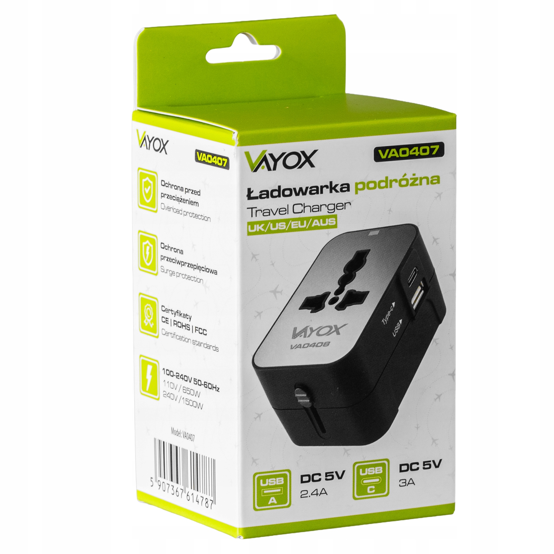 Адаптер Vayox оснащен двумя практичными USB-разъемами: