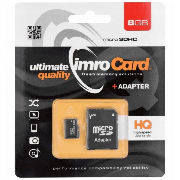 Оплачивая «Карта памяти IMRO microSDHC, адаптер micro SD 8 ГБ» данный товар из каталога «SD» вы можете быть уверены, что после оформления заказа, доставки в Украину, вы получите именно то, что заказывали, в оговоренные сроки и европейского качества.