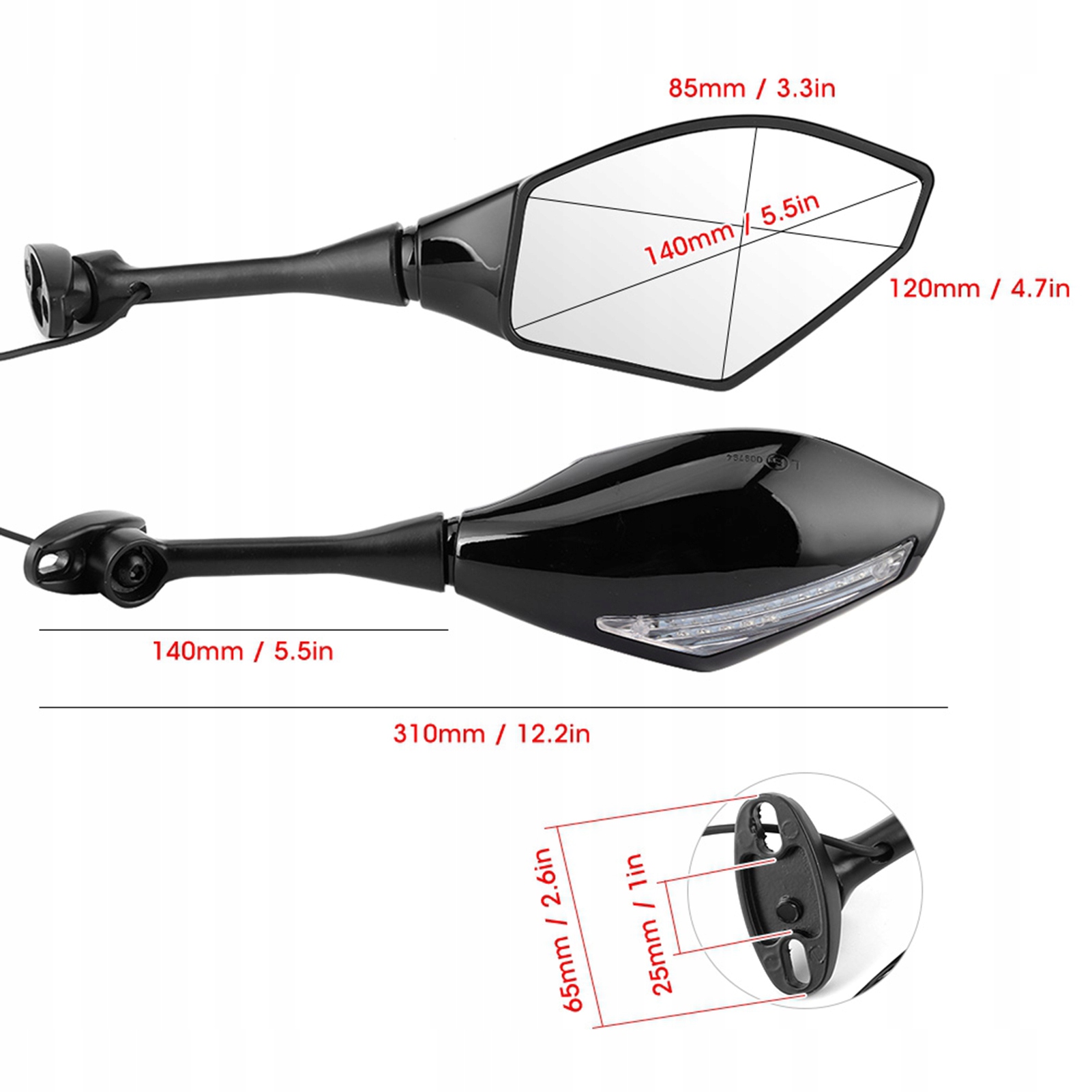 1.Регулируемый угол зеркала заднего вида вверх и вниз, влево и вправо для достижения широкого визуального эффекта. 2. Тонкое качество изготовления и красивый внешний вид делают ваш мотоцикл привлекательным и стильным. 3. Зеркало со встроенным светодиодом в виде передней стрелки, более привлекательное и практичное в использовании. 4. Корпус изготовлен из ударопрочного АБС-материала, надежного и не подверженного повреждениям в случае столкновения. 5. Благодаря левому и правому поворотнику вы будете ездить безопаснее и эффективнее.