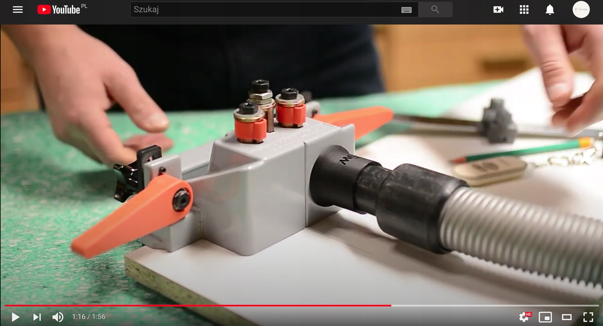 Презентация работы первой версии нашего адаптера в ДСП без отсоса и с установленным адаптером и пылесосом: