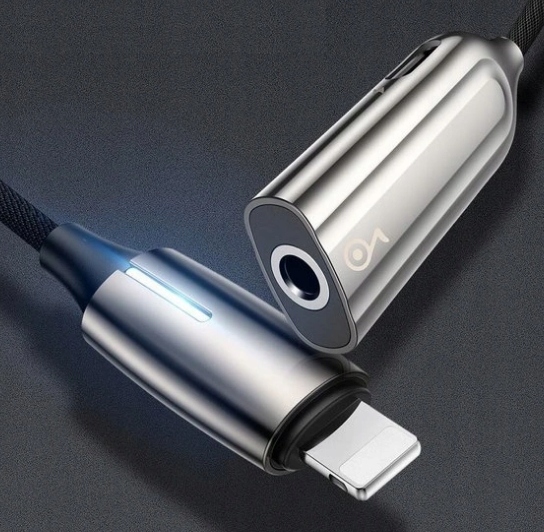 Адаптер, оснащенный входом AUX и портом питания Lightning, имеет уникальный дизайн, позволяющий слушать музыку во время зарядки.