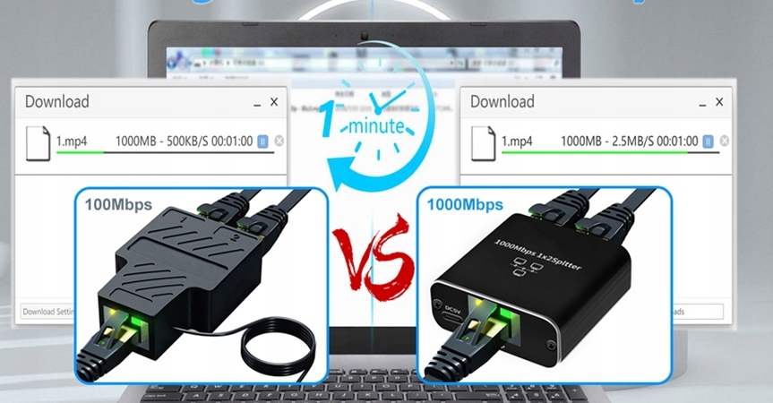 Сетевой разветвитель 1x 2 RJ45 1000 Мбит/с