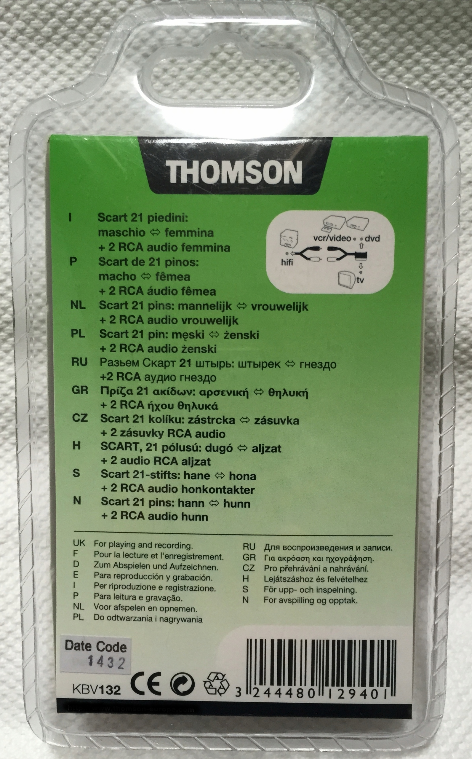 Переходник KBV132 французской компании THOMSON, новый, неиспользованный, фирменный и плотно упакованный в блистер.