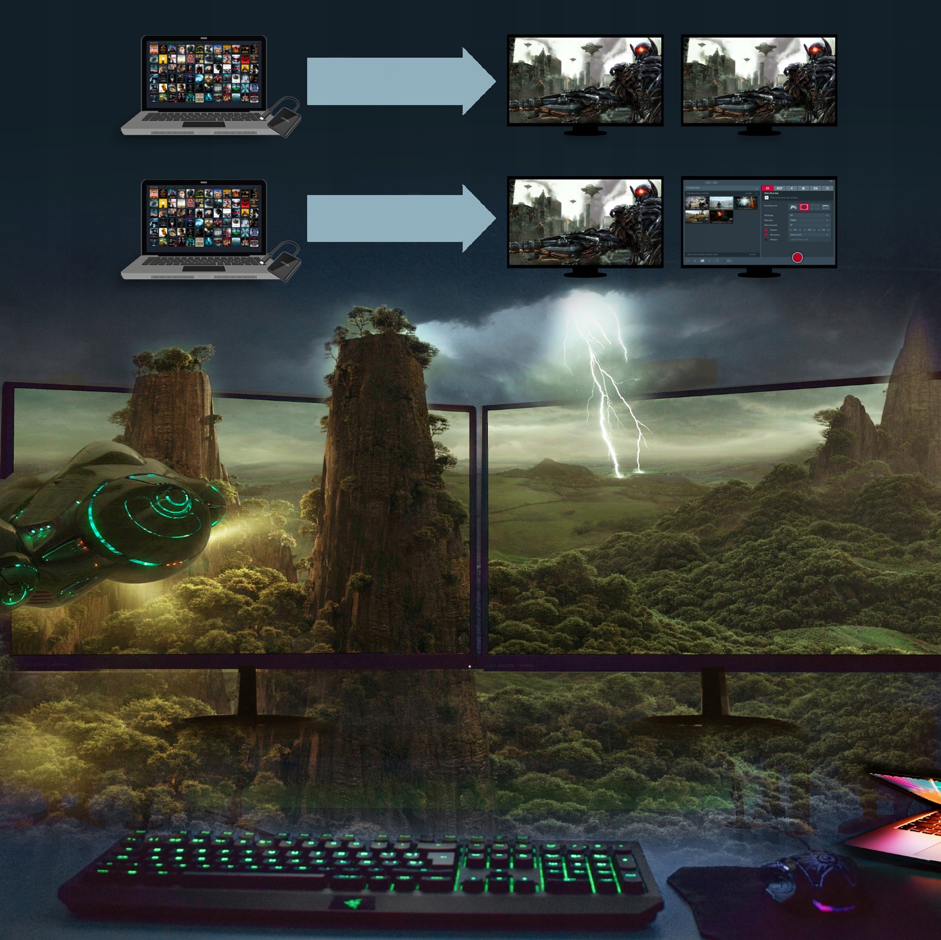 Технология Multi-Stream Transport позволяет расширить основной экран компьютера двумя дополнительными изображениями в максимальном разрешении (на компьютерах iOS расширение работает только на один экран, но на внешних мониторах возможно отображение двух одинаковых изображений) .