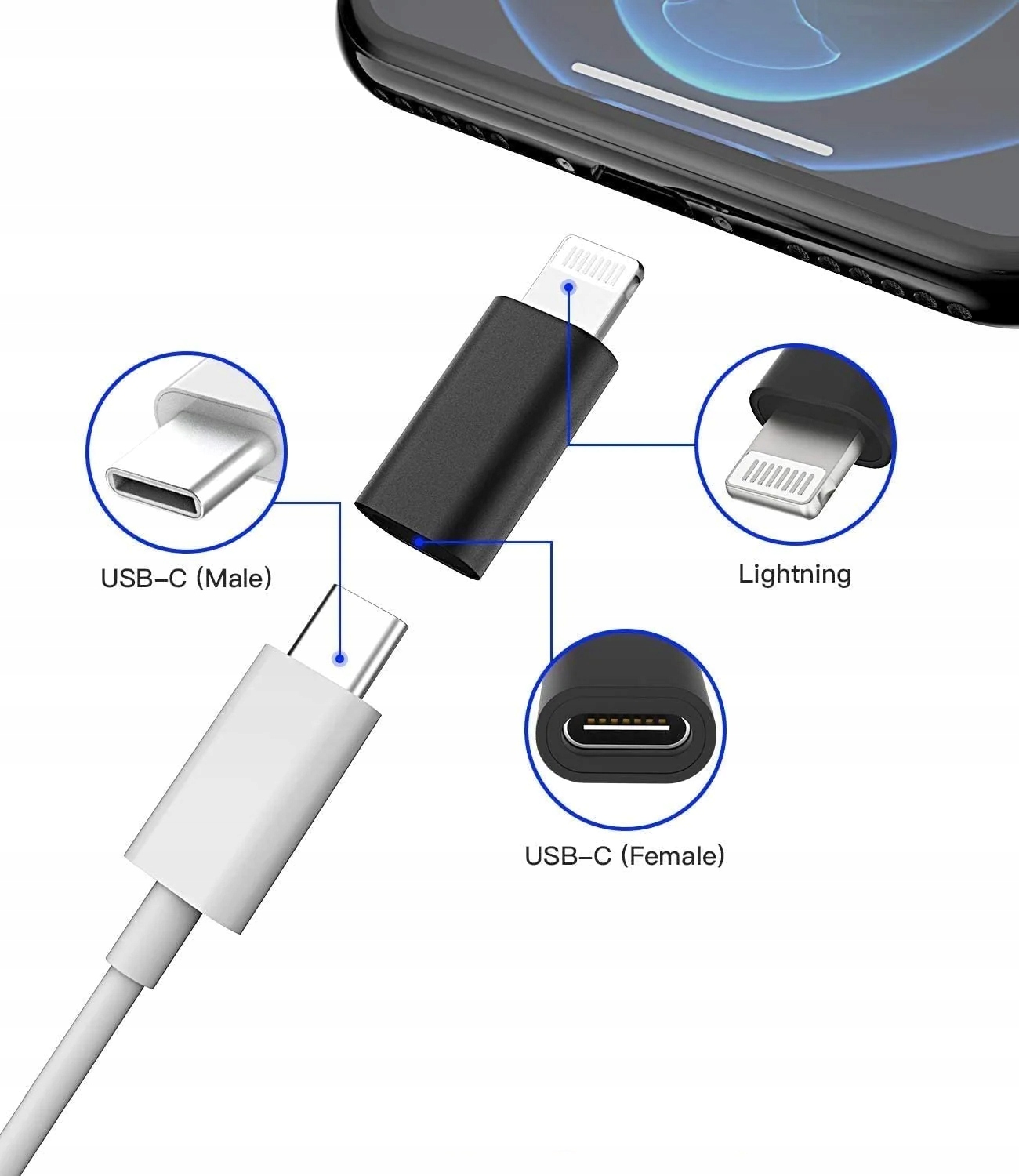 Адаптер USB-C (гнездо) — Apple Lightning (штекер)