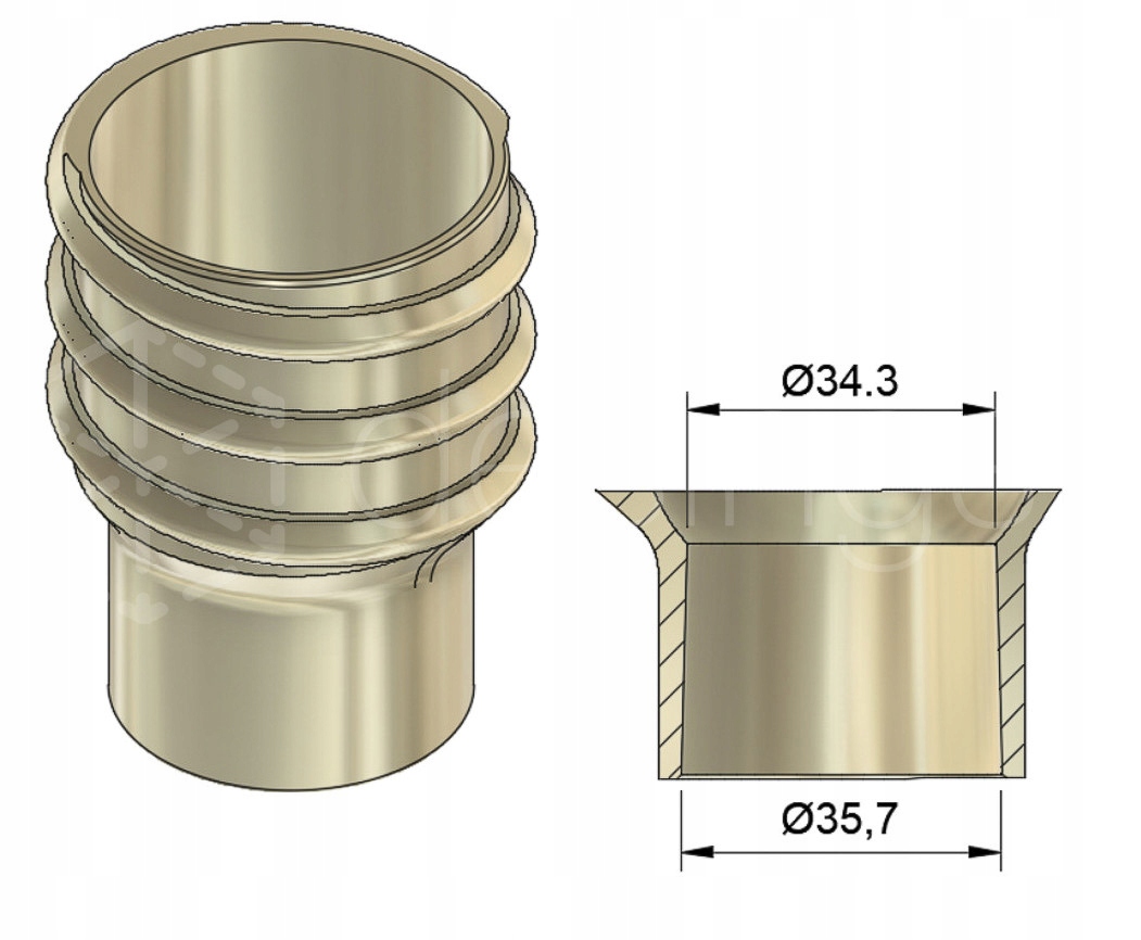 Переходник имеет внутри коническую форму, внутренний диаметр начинается от 35,7 и сужается до 34,3.