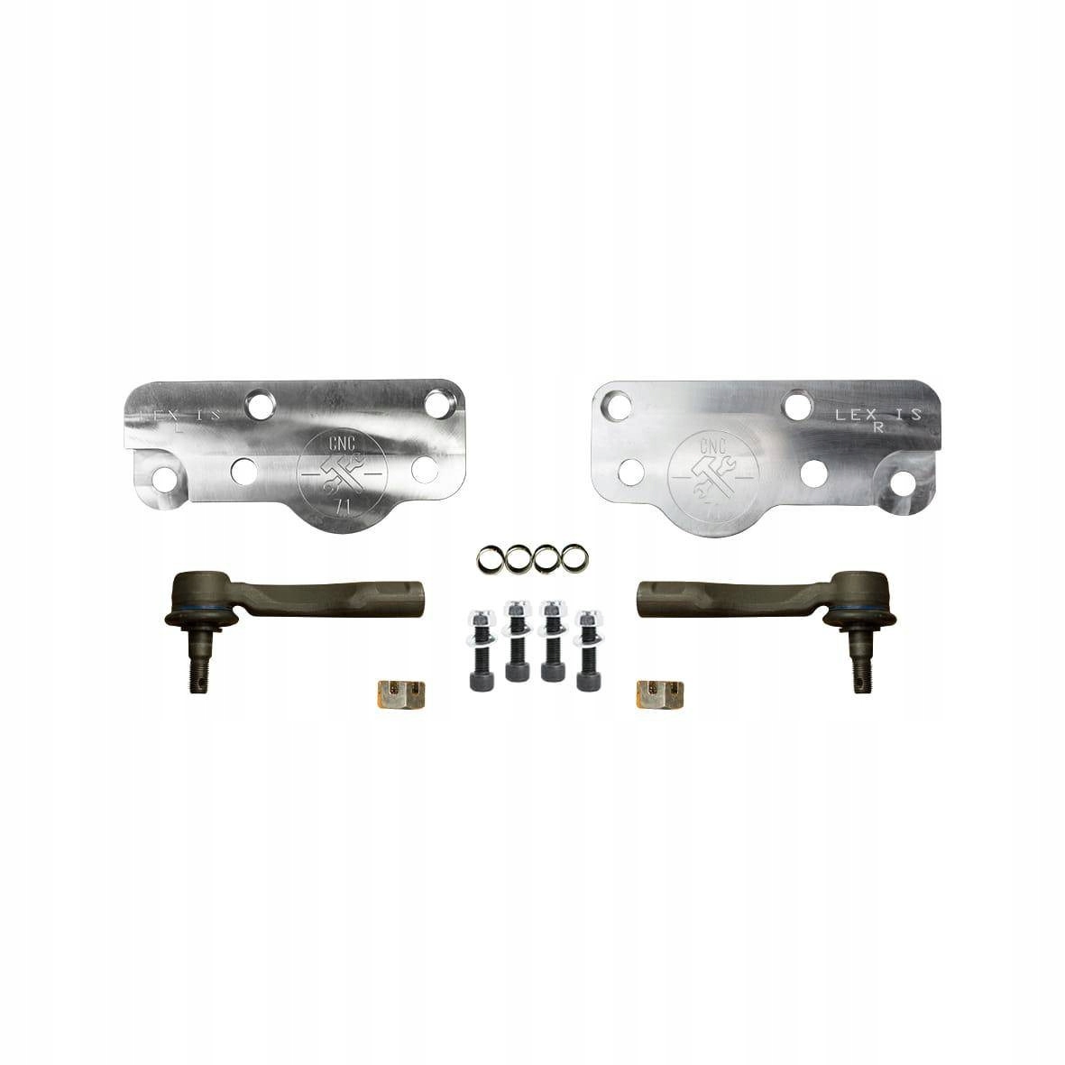 Предмет продажи — комплект переходников для серии Lexus IS 1-го поколения вместе с комплектом винтов крепления заводских поперечных рычагов.