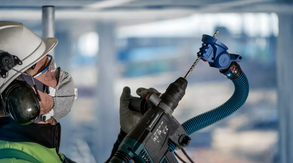Адаптер, подключенный к промышленному пылесосу, создает герметичное соединение с дрелью, эффективно удаляя образующуюся пыль непосредственно в бак пылесоса. Благодаря этому оператор может работать в чистой среде, не беспокоясь о негативном влиянии пыли на здоровье.