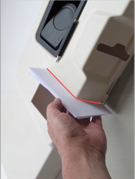 - Вырезаем из картона шаблон, прикладываем его к вырезу боком и отмечаем.