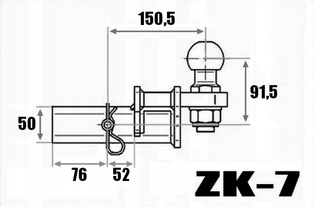 Горизонтальное выдвижение (расстояние от центра отверстия для штифта до центра шарика крючка) – 150,5 мм