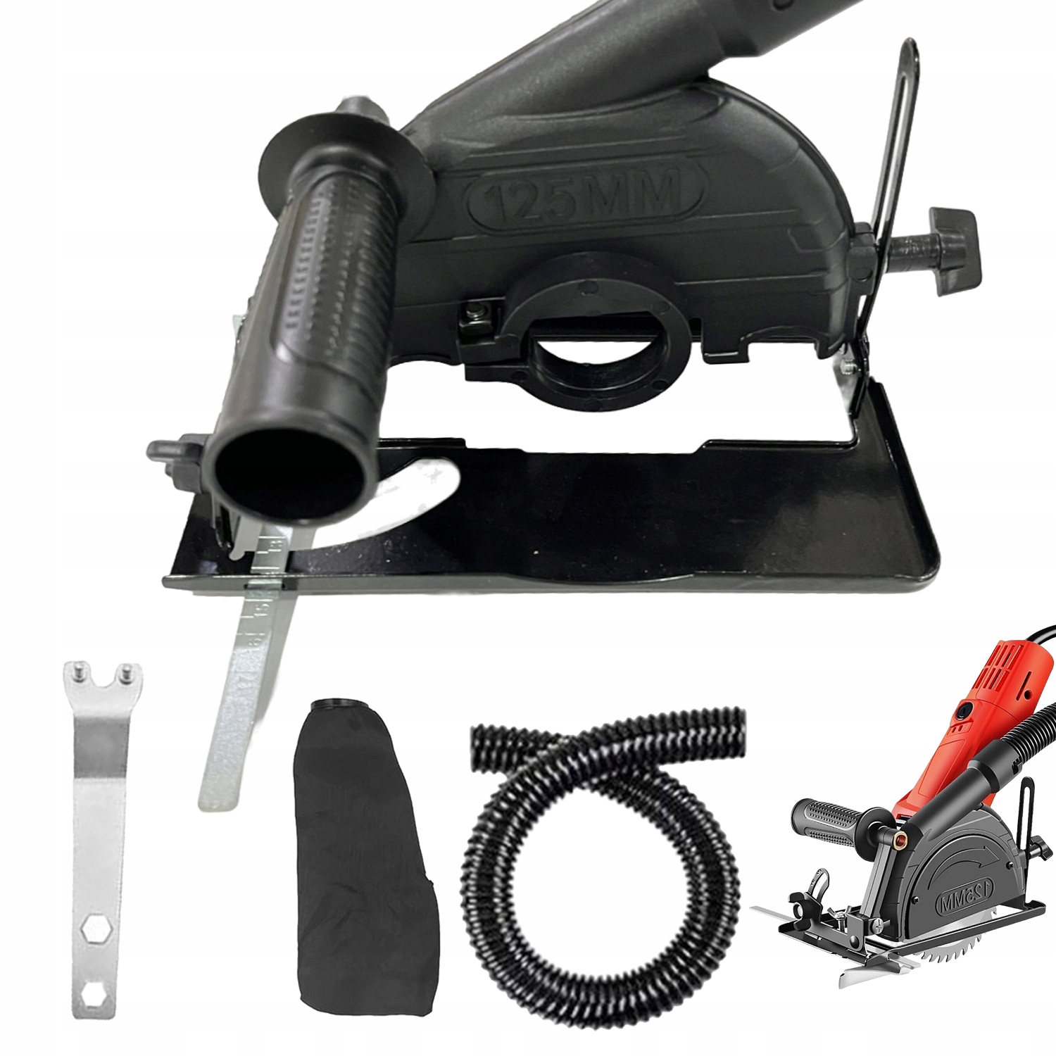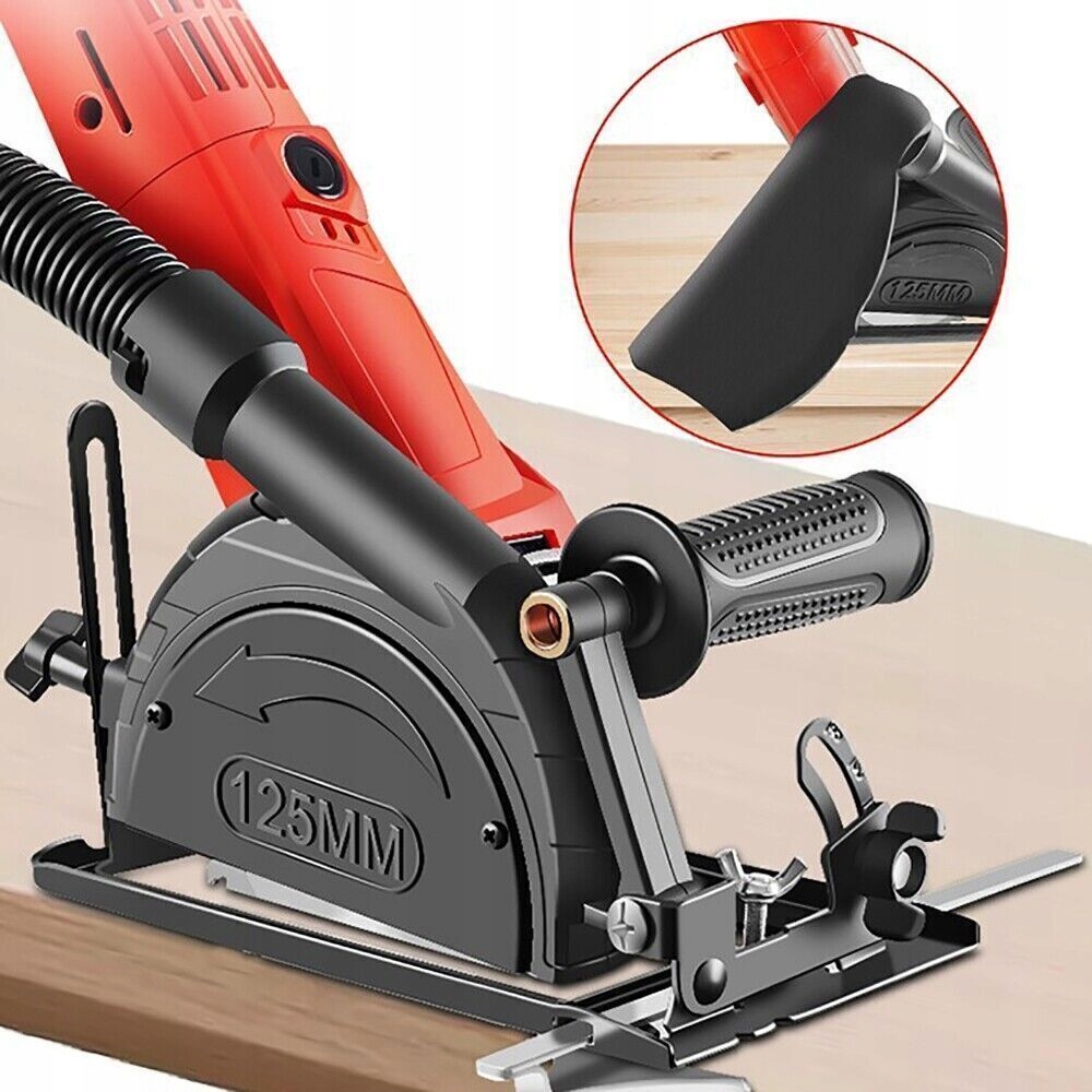 🔹 Увеличенная защита превращает угловую шлифовальную машину в подставку для резки. Он подходит для угловых шлифовальных машин 100–125 мм и допускает использование пильных полотен диаметром 125 мм.