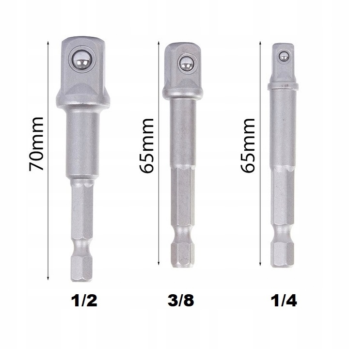 - Размеры продукта: 1/2 – 70 мм, 1/4 – 65 мм, 3/8 – 65 мм.