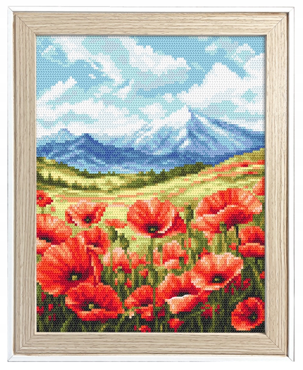 Поперечная вышивка - формула вышивки на бумаге - луг с маками
