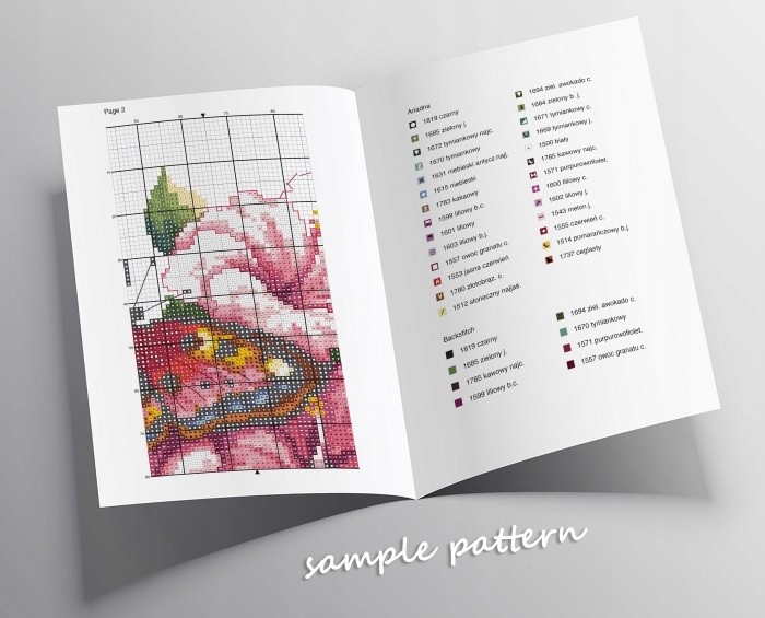 Красочный графический шаблон A4, напечатанный на высококачественной бумаге, с необходимым списком мулинов различных компаний: Ariadna, DMC, Maderia, облегчающий вышивку изображения на холсте с печати и рассчитанную вышивку. Продукты являются новыми, первоначально упакованы, от уважаемого производителя.
