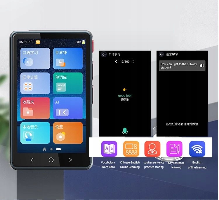 - Идеально подходит для обучения – содержит базу данных правильного произношения