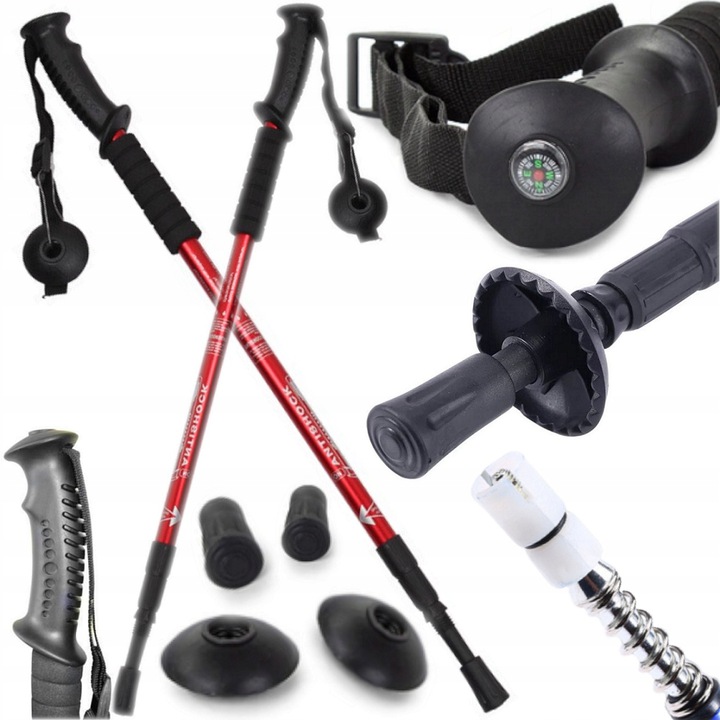 Классический тип трекинговых палок в различных цветах. Он изготовлен из легкого алюминиевого сплава и имеет складную (телескопическую) конструкцию. Длину шеста ANTISHOCK можно регулировать от 115 до 135 см. Рукоятки изготовлены из прочной резины, которая идеально адаптируется к форме руки, обеспечивая надежный и крепкий хват. Дополнительно, чтобы палка не выпадала из руки, к рукоятке прикреплена петля на запястье. Легкая и гибкая конструкция палки прекрасно снимает нагрузку с коленей во время длительных прогулок и восхождений на вершины. Его размеры в сложенном виде составляют 61 см