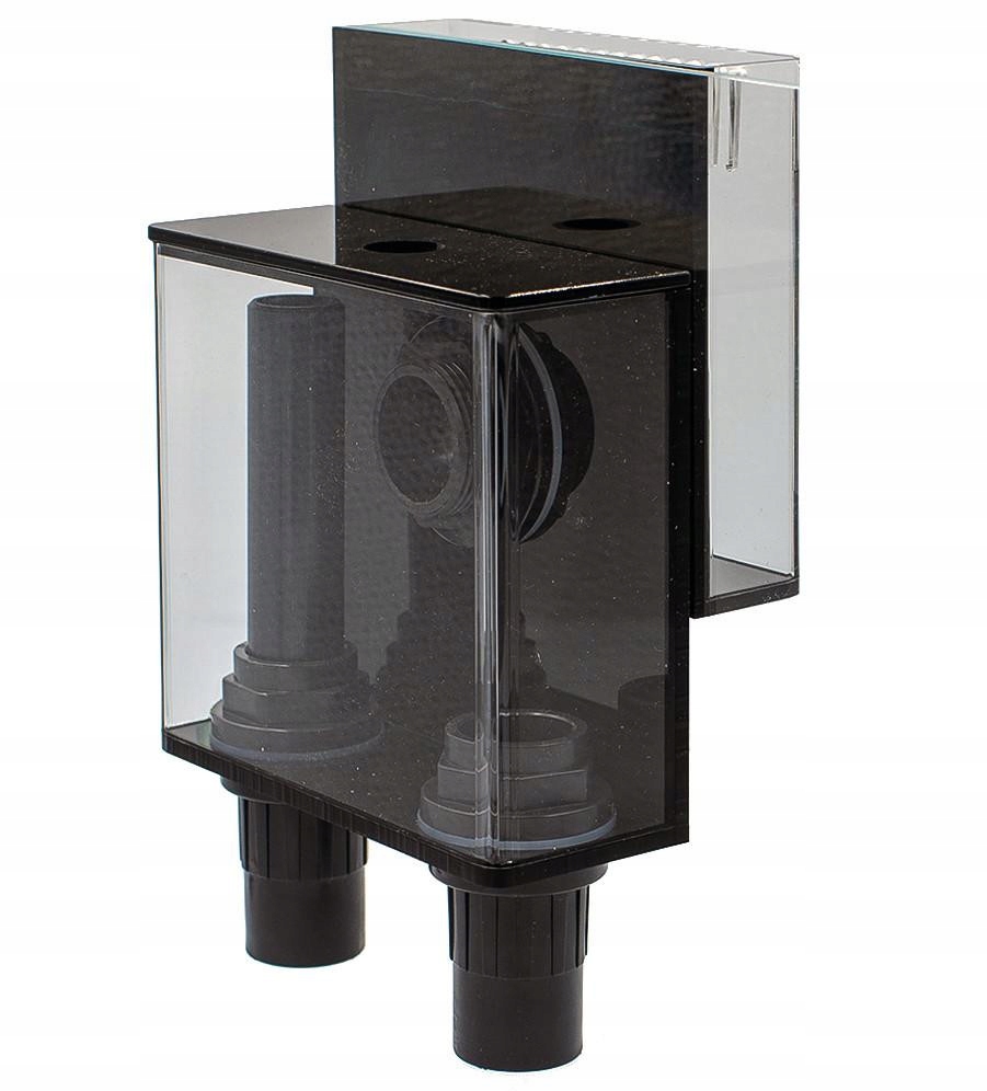 Переливная коробка OF300 идеально подходит для подсоединения отстойника к аквариуму. Он имеет небольшие размеры 15 х 4 х 13,5 см. Он обеспечивает максимальный расход до 3000 л/ч. Он изготовлен из чрезвычайно прочного прозрачного акрила, что позволяет контролировать его работу. Он работает по принципу сообщающихся сосудов и позволяет транспортировать воду из аквариума в отстойник. Вода, падающая через гребень, стекает вниз. По законам физики она вытекает за пределы аквариума через отверстие в стекле. Оттуда он через сливной патрубок попадает в отстойник. Конструкция оборудована ревизиями для предотвращения перелива воды. После фильтрации чистая вода возвращается в аквариум благодаря циркуляционному насосу.