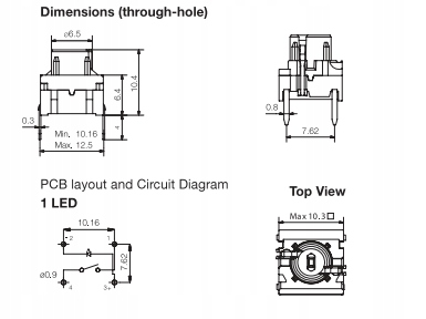 ПЕРЕМИКАЧ 10x10 + LED зелений 3FTL6 THT MEC ПЕРЕМИКАЧІ