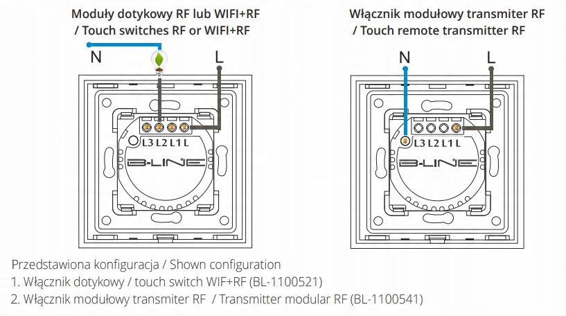 Связь между коммутаторами происходит на основе радиосвязи. (В стандартных лестничных коммутаторах связь выполняется с использованием кабеля связи Com). В этом случае у нас не нужно иметь кабели связи между коммутаторами. После программирования переключателя с помощью дистанционного управления (передатчика) цепь работает по принципу переключателей лестниц. Дополнительным преимуществом является возможность программировать дополнительных пилотов в переключатель. (Т.е. возможность программировать 3-4 RF Transoiters в модуль RF или RF + Wi-Fi)