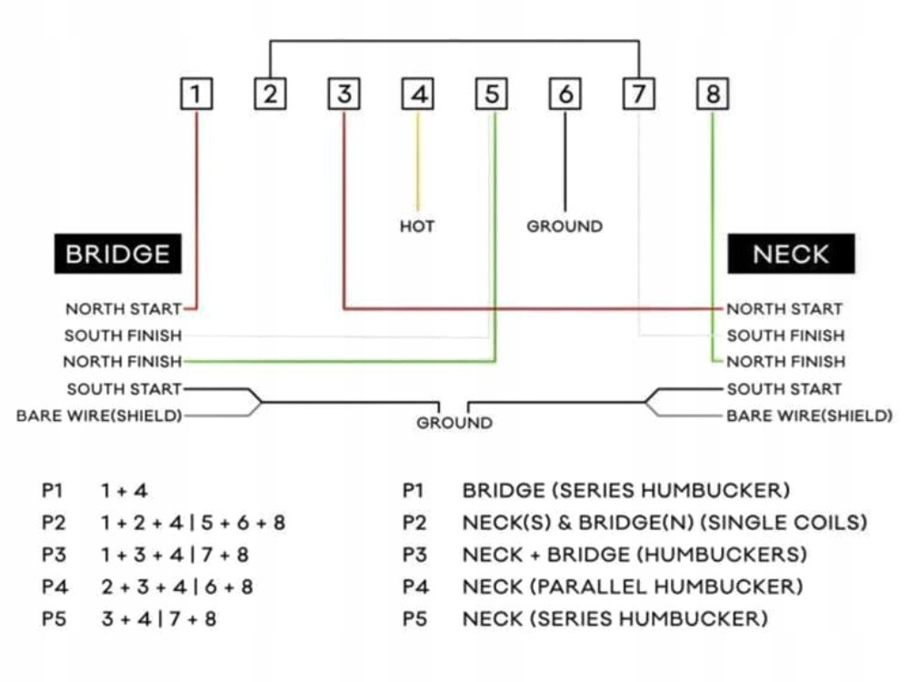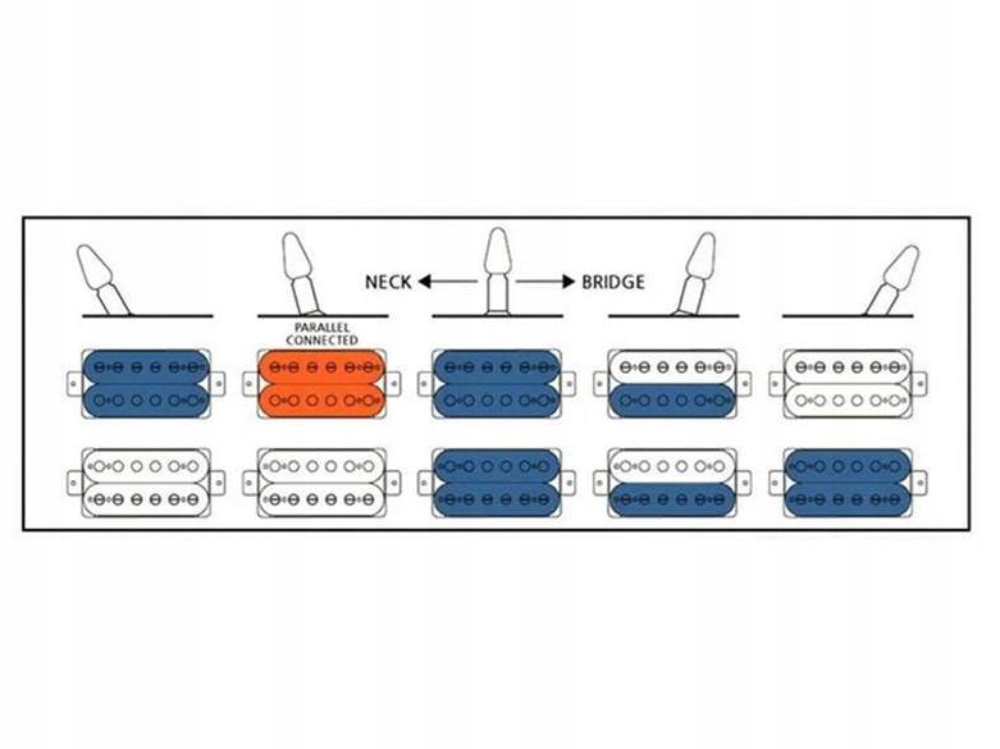 Идеально подходит для гитар с системой звукоснимателей HH, позволяет получить дополнительные звуки, недоступные при использовании классического переключателя. Иная система подключения внутри переключателя позволяет отключать катушки в положении 2 и параллельное подключение катушек хамбакера в положении 4. Это очень популярная система в гитарах известного японского бренда, а переключатель ALPHA 2502N используется как оригинальная часть этих систем.