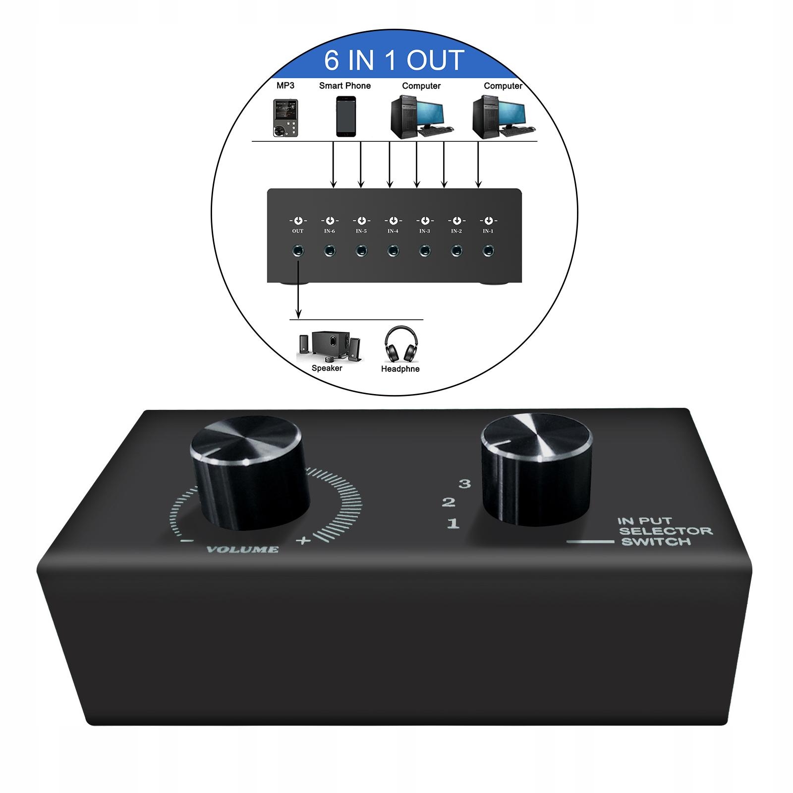 3 . Аудиопереключатель 5 мм: 6 входов, 3,5-мм стереофонический аудиопереключатель, переключатель разделения звука и .