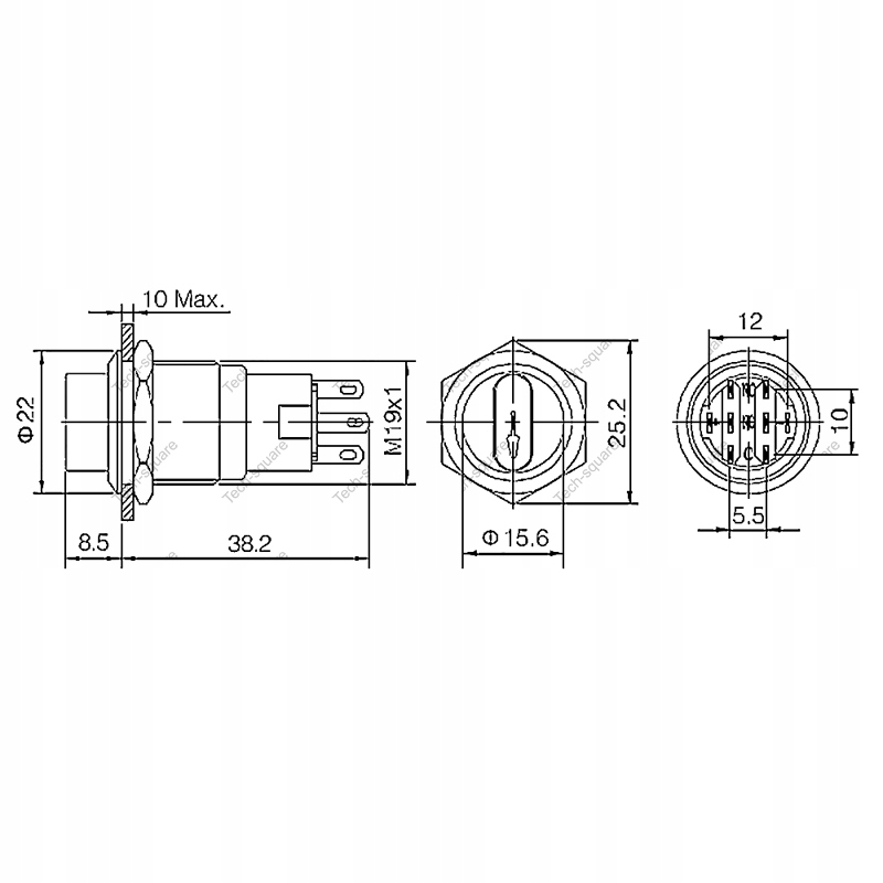 - Наружный диаметр. кнопка: 21,8 мм