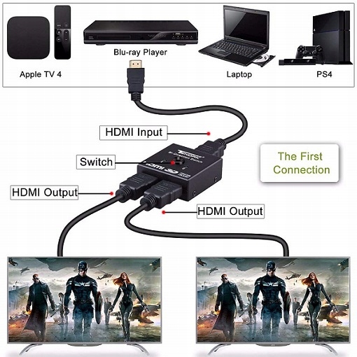 Описание: Тип элемента: Переключатель HDMI Двунаправленный переключатель HDMI Переключатель HDMI имеет кнопку сверху, эта кнопка позволяет переключать 2 HDMI источников (например, компьютера, Xbox One, PS3) на 1 дисплей HDMI (например, проектор или телевизор высокой четкости) или подключите 2 дисплея к 1 источнику HDMI. Это означает, что этот переключатель двунаправленный — сигнал HDMI может идти в любом направлении. Простота в использовании Небольшая коробочка кубической формы легко помещается в руке и буквально не занимает места. Подключи и работай, для этого концентратора HDMI-коммутатора не требуется никакого внешнего источника питания или драйвера, подключение осуществляется только через кабели HDMI, а запуск занимает всего несколько минут. Воспользуйтесь советами: - Если ваше устройство-источник HDMI (например, XBox, PS4 Pro) поддерживает разрешение 4K, используйте кабель HDMI 2.0 для подключения устройства-источника HDMI 4K, переключателя и дисплея HDMI, поскольку HDMI 1.4 (или ниже, чем HDMI) 1.4) кабеля недостаточно для поддержки разрешения 4K (4096*2160). -2. Если ваш кабель HDMI не является кабелем HDMI 2.0, вы можете настроить разрешение устройства-источника HDMI 4K на 1080P (1920*1080), чтобы оно соответствовало спецификациям кабеля HDMI, или использовать для подключения соответствующий кабель HDMI. -3. Переключатель HDMI не может обеспечить одновременную работу двух устройств отображения при подключении 1 хоста HDMI к 2 телевизорам или мониторам HDMI. Наслаждайтесь самым роскошным разветвителем видео и аудио. Разветвитель HDMI поддерживает все видеоформаты, такие как разрешение 3D, 1080p, 2K x 4K, а также звук HD. Работает со всеми устройствами, оснащенными портом HDMI, такими как настольные компьютеры, ноутбуки, игровые консоли, Xbox 360, Xbox One, PS3, PS4, проекторы, телевизоры, телевизоры и другие. Поскольку вы не можете включить переключатель HDMI, вам необходимо использовать USB-кабель для питания TV Stick после подключения переключателя HDMI к TV Stick и открытия другой опции. Высокое разрешение: поддержка 3D, 1080P, 4K x 2K и HD Audio. . Используйте стандартные кабели HDMI 2.0 для подключения источника HDMI (например, XBox, PS4 Pro) к дисплею и переключателю HDMI, если разрешение источника HDMI поддерживает 4K/30 Гц (4096*2160). Быстрая и стабильная передача: этот переключатель HDMI AB не только поддерживает передачу данных с высокой пропускной способностью 3,4 Гбит/с, но также обеспечивает стабильное отображение аудио и видео высокой четкости. Стандартный входной и выходной кабель HDMI AWG26 может достигать длины до 5 м. Широкая совместимость: подходит для большинства устройств со стандартным интерфейсом HDMI. Вход: компьютер, XBox 360, XBox One, PS3/PS4, проигрыватель Blu-Ray DVD и т. д. Выход: телевизоры, мониторы, проекторы и т. д. HD-Ready или Full HD. В комплект входит: 1 переключатель HDMI