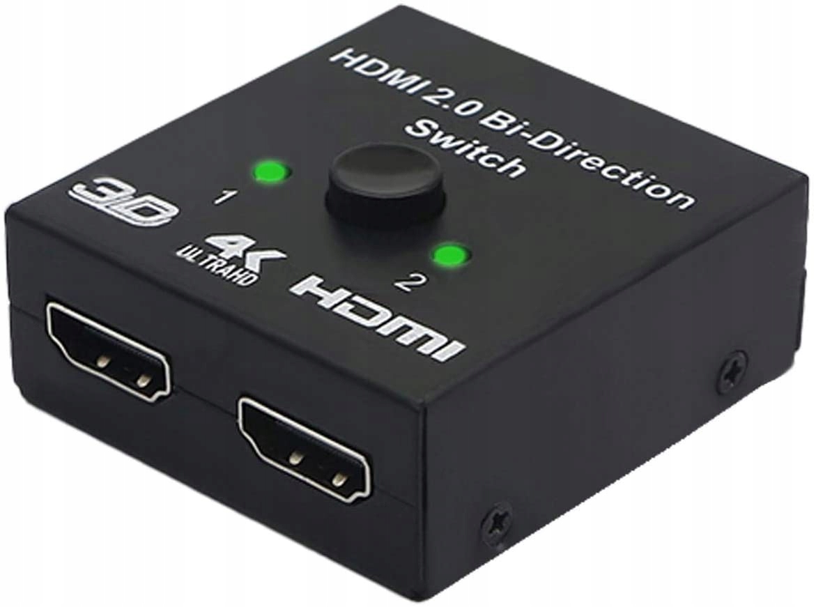 Коммутатор оснащен двумя входными портами и одним выходным портом. Верхняя кнопка позволяет легко переключаться между розетками. Когда активен только один разъем, переключатель автоматически переключится на него. Источник сигнала отмечен диодом, расположенным рядом с кнопкой. После включения или подключения источника изображения разветвитель автоматически переключится на него.