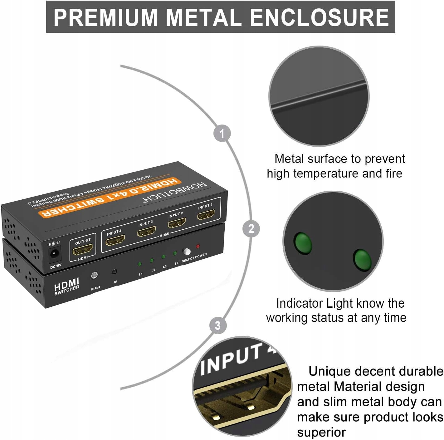 NOWBOTUCH 4K, 60 Гц, 4 x 1 переключатель HDMI 2.0.