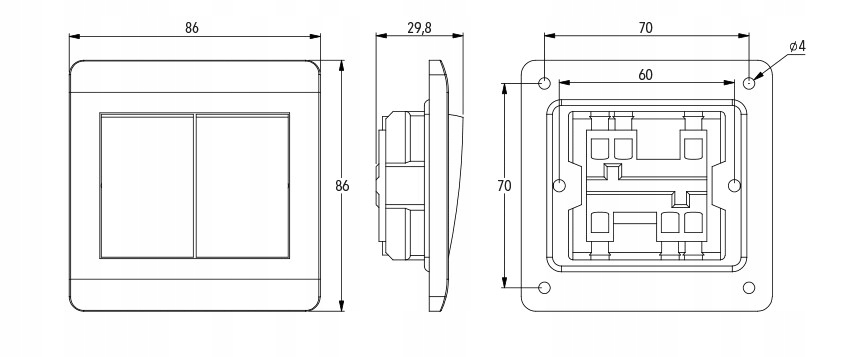 Выключатель монтируется внутри помещения. Конструкция корпуса позволяет монтировать контроллер внутри стены в монтажной коробке для скрытого монтажа.