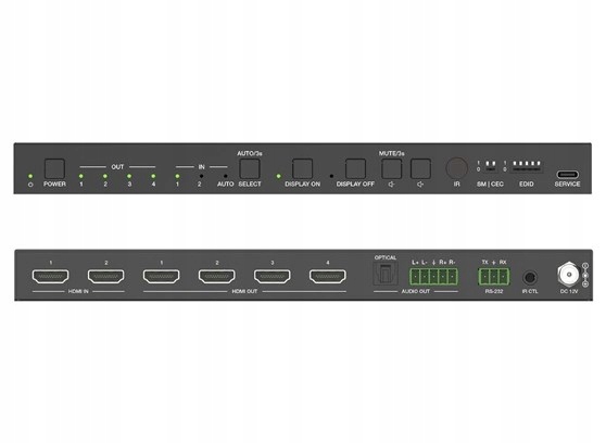 - Управление: 2-контактный DIP-переключатель (HDCP и CEC), 5-контактный DIP-переключатель (EDID) и физические кнопки