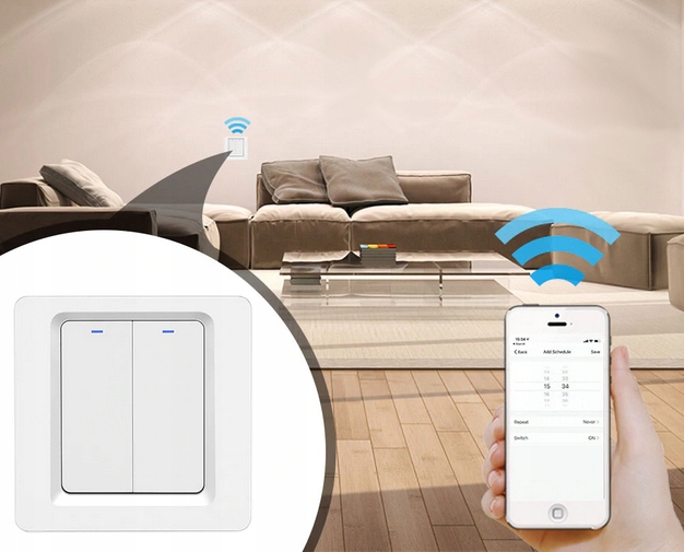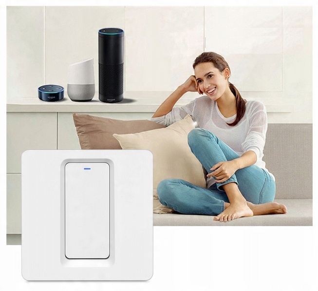 ➡ сжатый (кликбельный) переключатель, который после замены традиционного выключателя освещения позволит реализовать интеллектуальное управление освещением и удаленное обслуживание от приложения на смартфоне