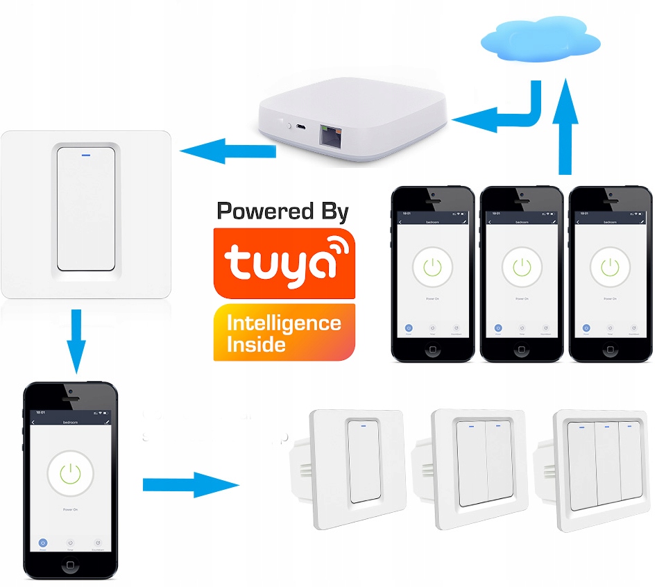 - действие в соответствии со сценарием в зависимости от работы других элементов системы или условий, например, Датчик движения, время суток и т. Д. Для работы Zigbee Devices необходимо иметь панель управления Wygbee-Bramka, которая является «узлом» между элементами системы и облачным интеллектуальным сервером Tuya 9054486387
